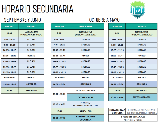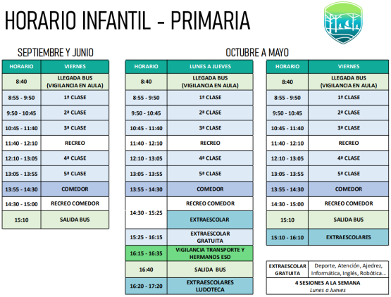 Comedor, transporte y extraescolares